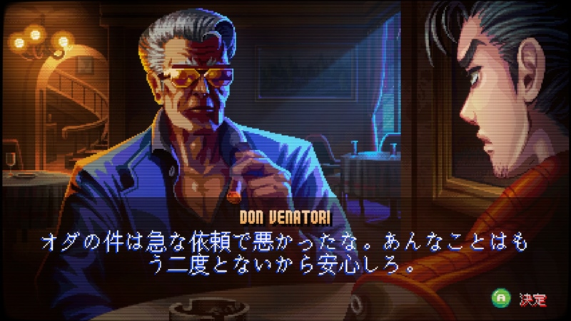 「ありそうでなかった」を形にした良作。横スクロールアクションと疑似3Dのガンシューティングを自然に融合させたゲームシステムと違和感のない操作性、起伏のあるステージ構造が素晴らしかった。特に3Dガンシューティング部分は『ワイルドガンズ』に影響を受けたことを公言しているのも納得のオマージュぶりであると同時に、横スクロールアクションと融合させて独自性もしっかり出した見事な仕上がり。敵が基本的に人間中心とは言え、やられ様は派手で、ステージによっては爆発フィーバーもあったりなど、見た目の派手さとやかましさ(誉め言葉)もバッチリで好印象。これに加えて「濃ゆい」のひと言に尽きる全編ドット絵で描かれたグラフィックの凄さよ。キャラクターの細かな挙動からエフェクト、イベントデモに至るまで手が込みすぎと言わんばかりに作り込まれていてため息すら出るほどだった。